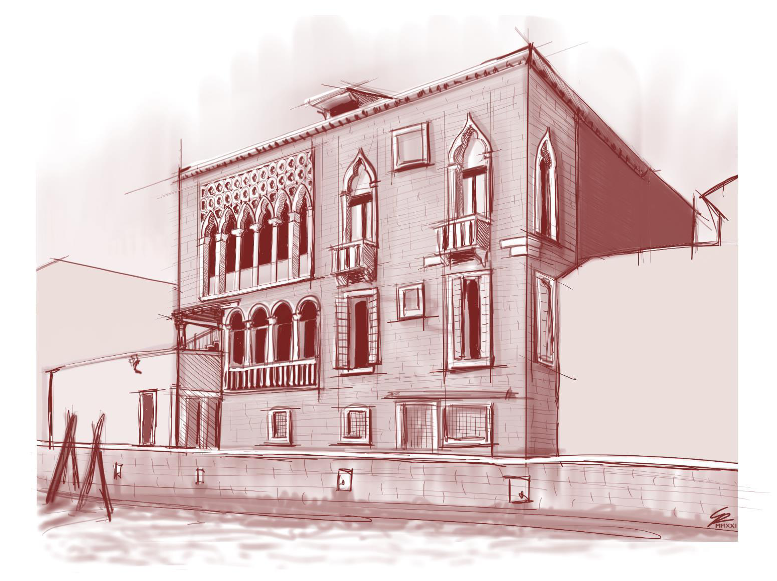 La silhouette di Eccentrica è un insieme di volumi decentrati accostati l'uno all'altro, che ricordano le facciate gotiche della Città d'Acqua per eccellenza, e la loro bizzarra asimmetria.